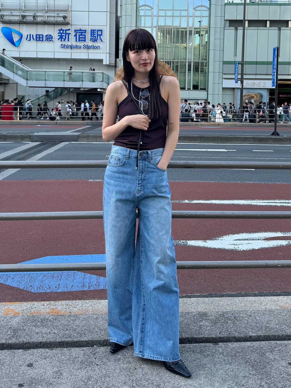 タンクトップ×デニムの夏コーデ! タンクはカップ付きで着心地◎