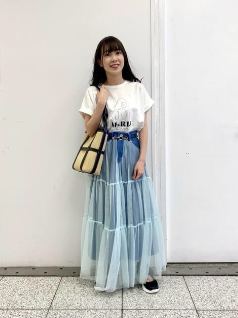身長150cm ☆トップス 触り心地がサラッとしていて汗かいてもベトつかない感じです!!✨ 程よいボリュームなので小柄・華奢さんでも安心して着れますよ♩ 着丈もそんなに長くないですが、小柄さんはスカートにインした方がスッキリかと思います◎ ☆スカート ウエストが少し大きめだったので、普段Sサイズの華奢さんはベルト必須です!! 着丈は少し長めなのでヒールか厚底がオススメです◎ ぺたんこのスニーカーだと身長150cmでは裾が地面につきました。 デザインに一目惚れする方も多いと思います✨