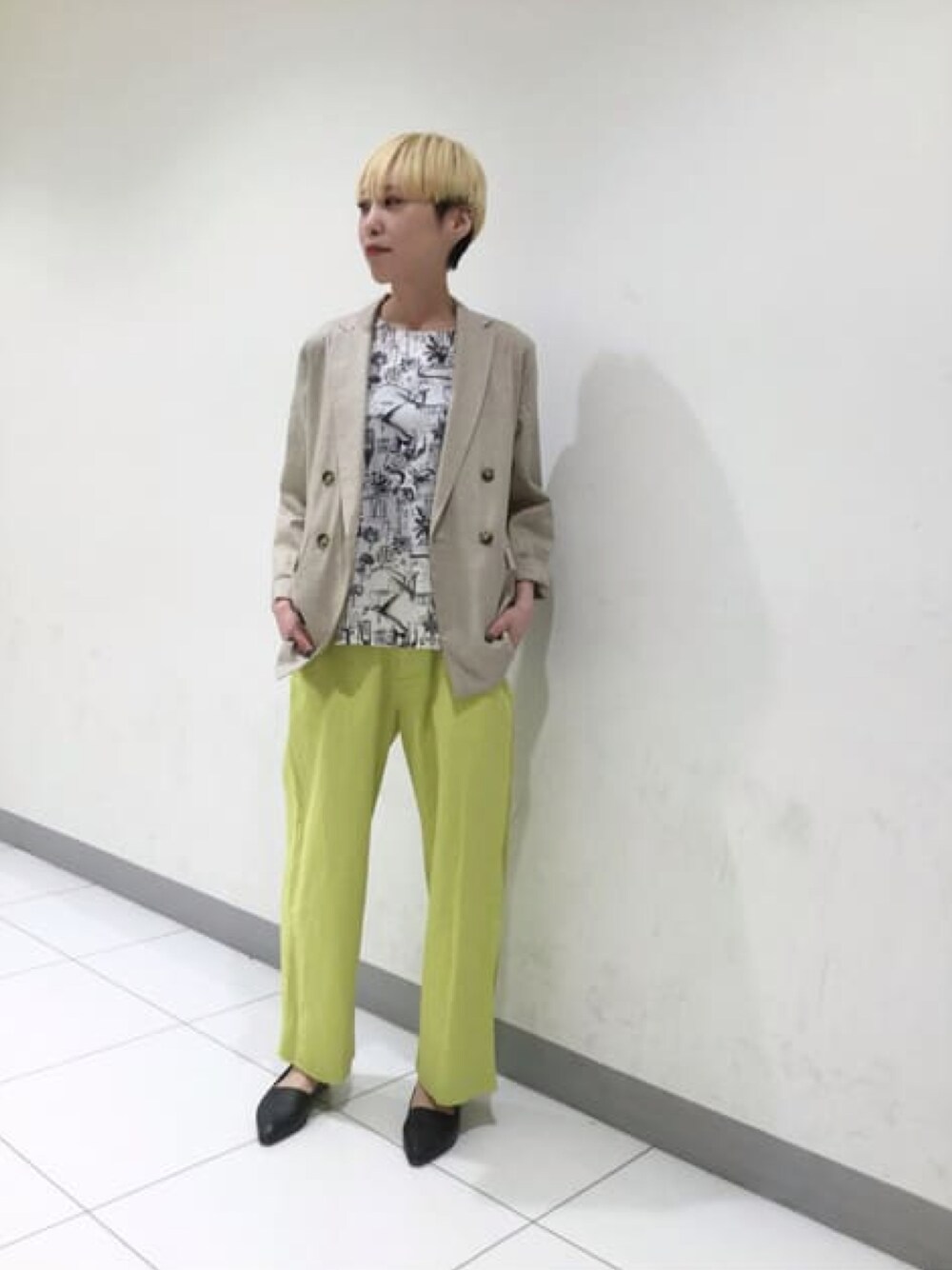 身長162cm ジャケット ブラウスのような着心地で軽く動きやすい◎ ブラウス 総柄でもシックな配色で大人な印象 パンツ シルエットが綺麗!O脚が目立たないです! 麻混ですが固すぎなく柔らかで履きやすい◎