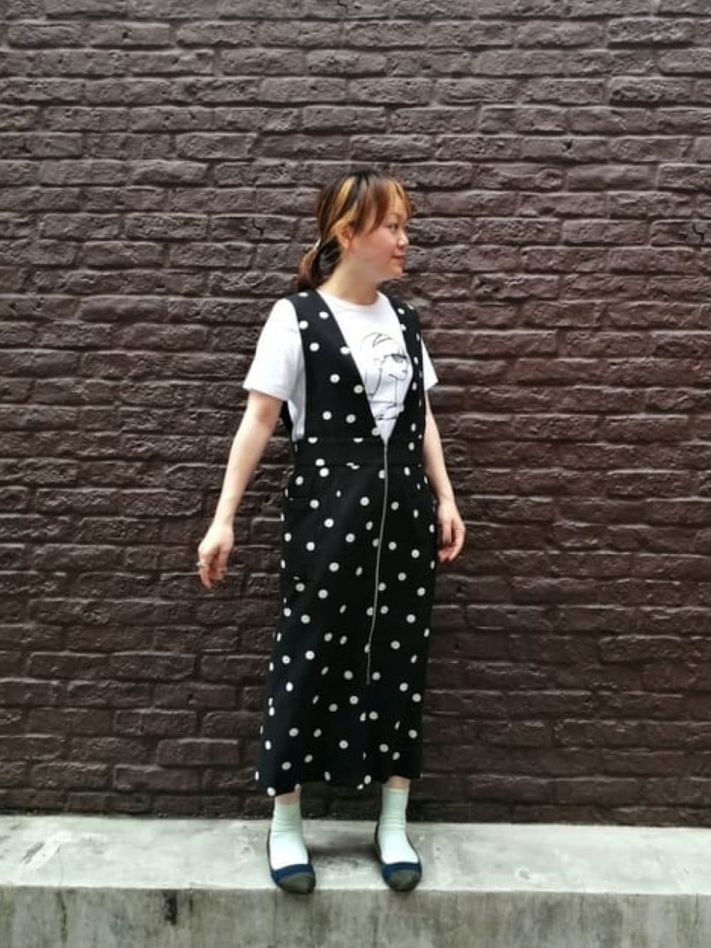身長156cm ●トップス● スッキリコンパクトなお洒落Tシャツ。 ワンピースと合わせてもモタツカない! 袖丈しっかりで安心☆ 首元は広すぎずつまりすぎず。 ●ワンピース● ドットに一目惚れ〜♪ ザックリ広い開きでインナー次第で印象変えられちゃう! スッキリ落ち感。 ジップ開けてジレにもできちゃう優れもの。