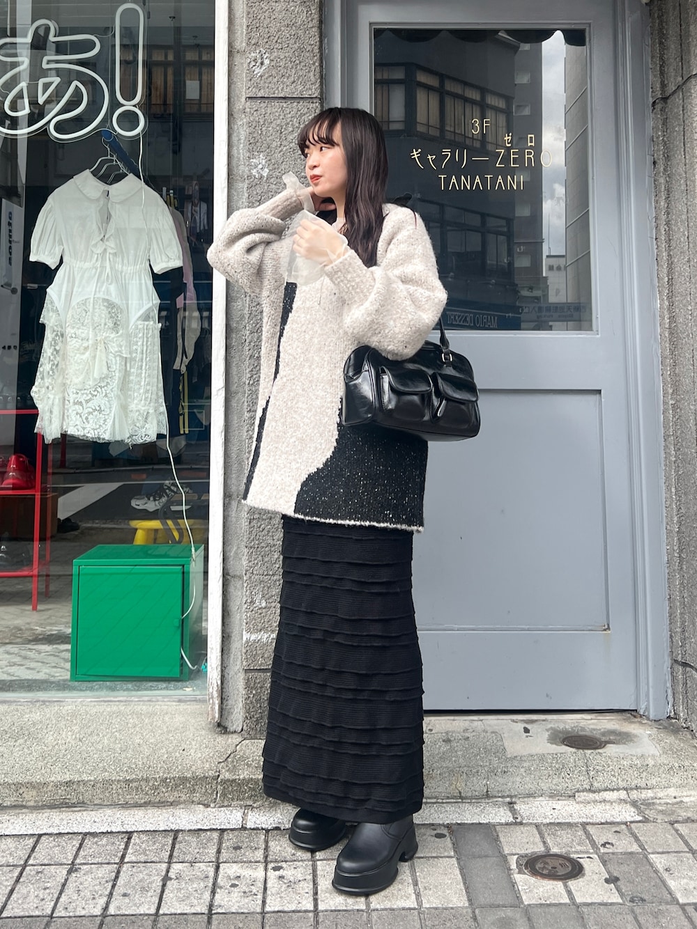 【スタッフレビュー】 骨格:(自己診断)ウェーブ パーソナルカラー:(自己診断)オータム 【knit】 着用カラー: アイボリー/ 着用サイズ:F しっかりした生地で、分厚めのニットなので、肌寒いくらいの時期であれば、アウターなしでも十分暖かいです◎! 驚きのリバーシブルで、2倍楽しんでいただけます!! 【bottom】着用カラー:ブラック / 着用サイズ:F 横から見た時のシルエットが特に綺麗で、細見えを叶えてくれるスカートです!! ダボっとしたシルエットのトップスとの相性が◎で、ニットやジャケット、スウェットなど、合わせていただくのがオススメです。 【tops】着用カラー:アイボリー / 着用サイズ:F ニットの中に着て、袖だけチラリと見せるだけでコーデに可愛さが増すトップスです! 【shoes】着用カラー:ブラック / 着用サイズ:38(普段24.5㎝着用) 履き心地がとにかく優れているブーツです!フィット感があり、長時間履いていても疲れにくいです。