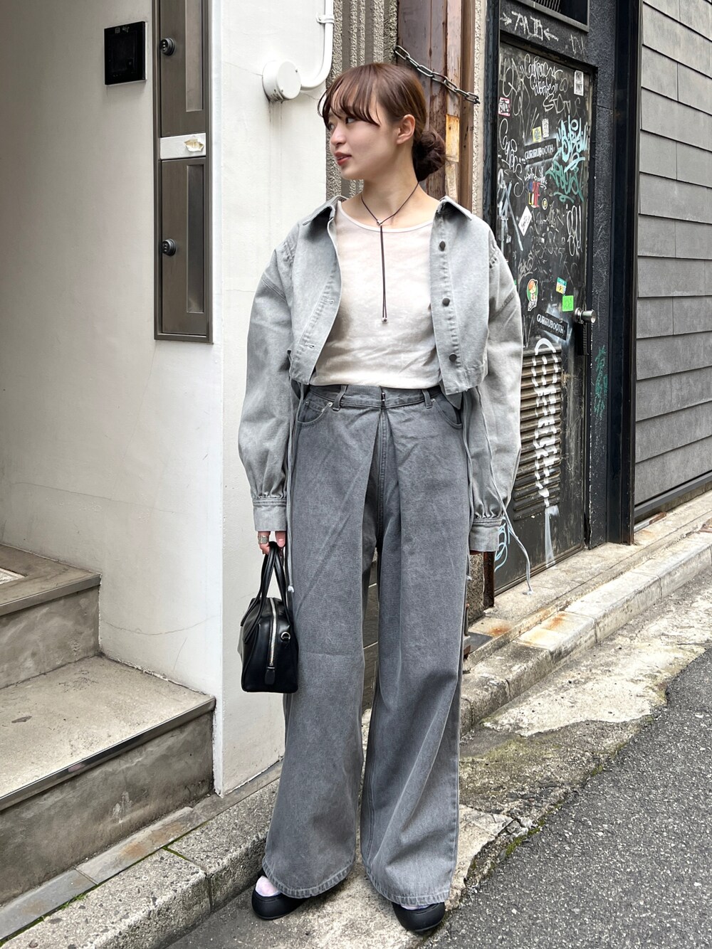 hamamoto hiyoriのデニムパンツ「【3サイズ展開/低身長サイズ】デニムタックワイドパンツ」を使ったコーディネート