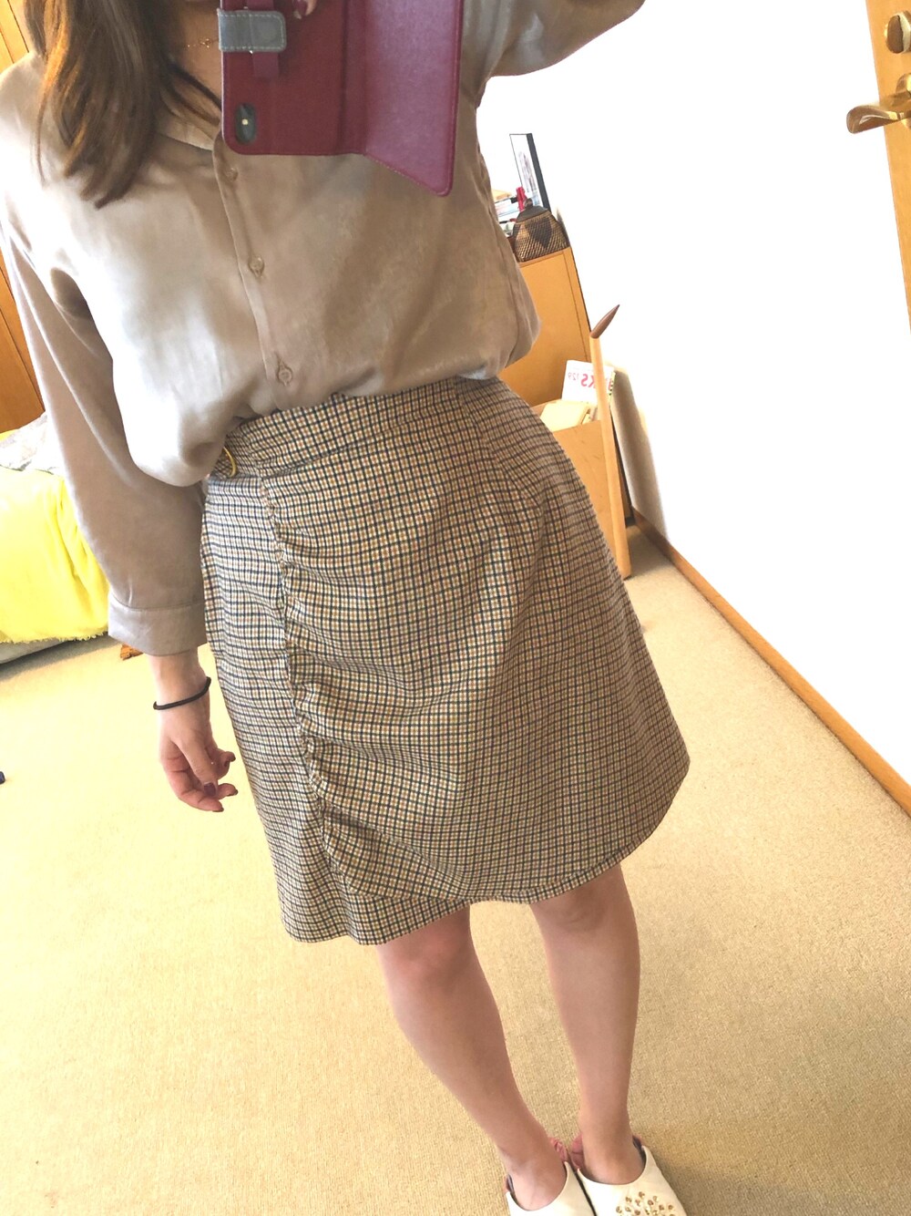 秋服着たいけど今日も暑い😵☀️💦 トップス黒のタートル着たかったけど 断念して🤦🏼♀️ GUのてろてろシャツにしました❤️ これはこれで可愛いくて好き😍 色だけでも秋色に〜☀️💓