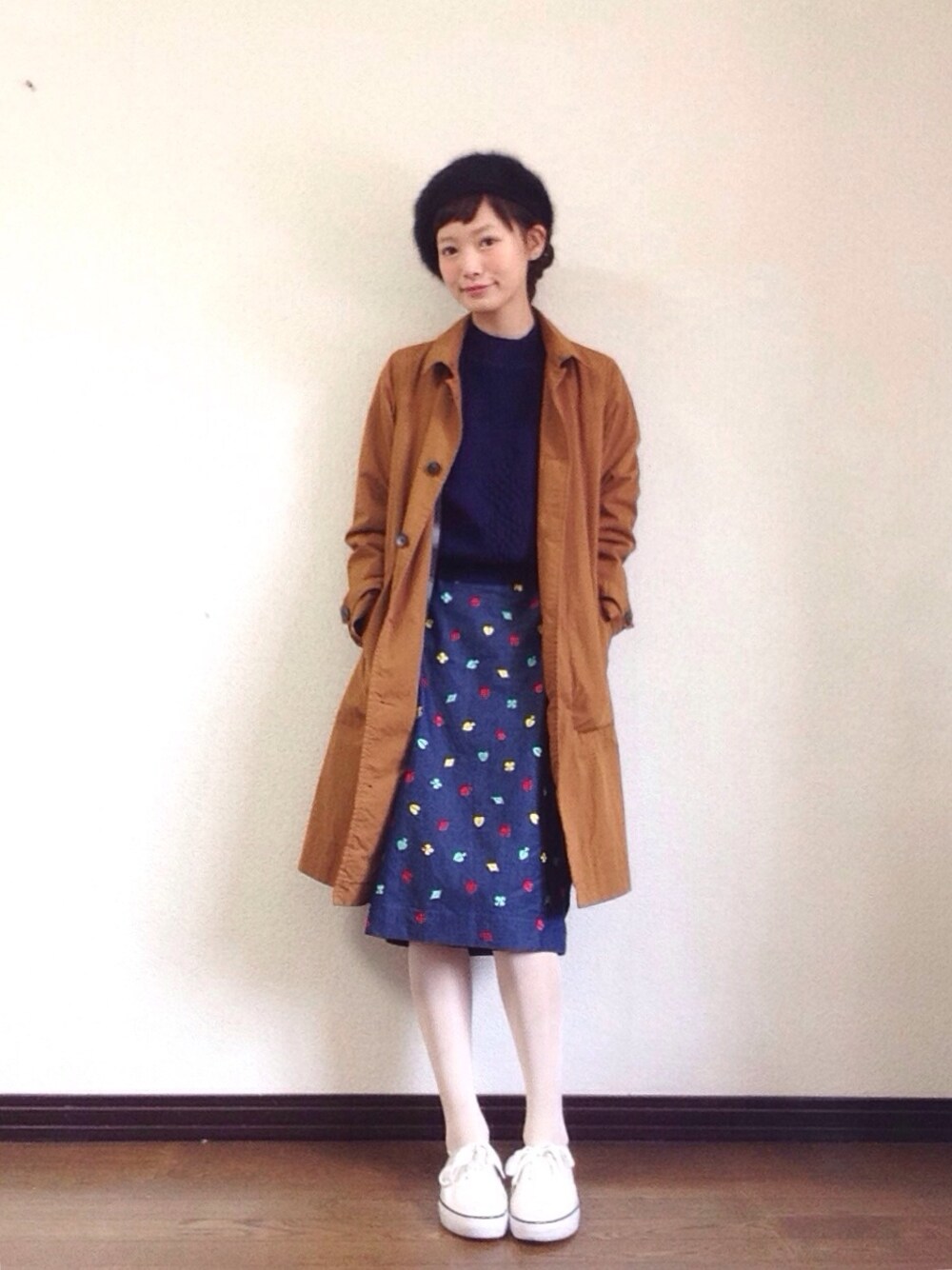 わしのこずえのステンカラーコート「からし色ロングコート」を使ったコーディネート