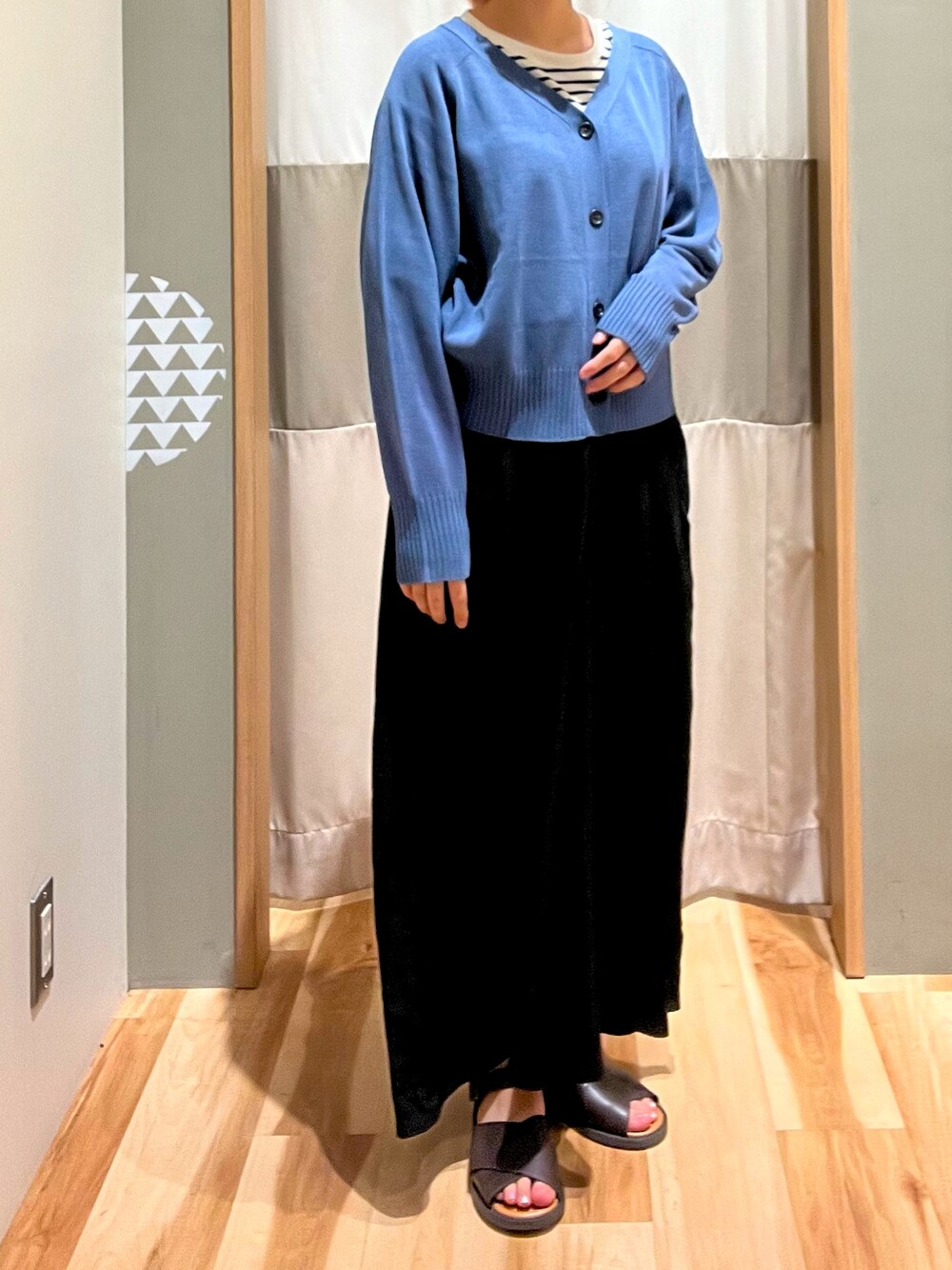 動きやすいスカーチョとVネックのカーディガンは今からでも使え長く着用出来るアイテムです!🍃