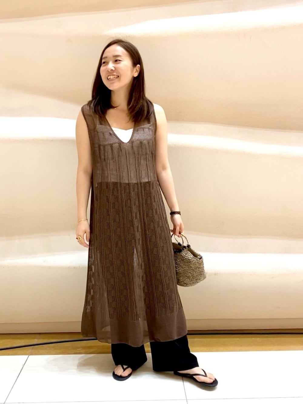 平沼 彩花(デザインワークス 六本木店)のワンピース「boussole×qualite 透かし柄シアーニットワンピース」を使ったコーディネート