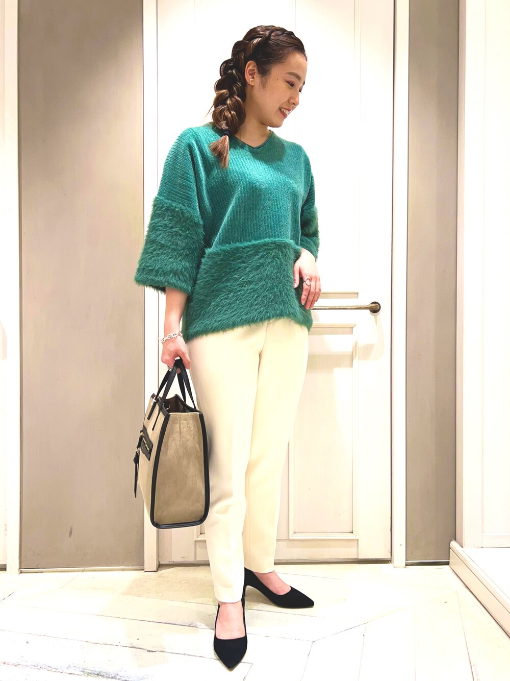 平沼 彩花(デザインワークス 六本木店)のニット/セーター「フェザードッキングニットプルオーバー」を使ったコーディネート