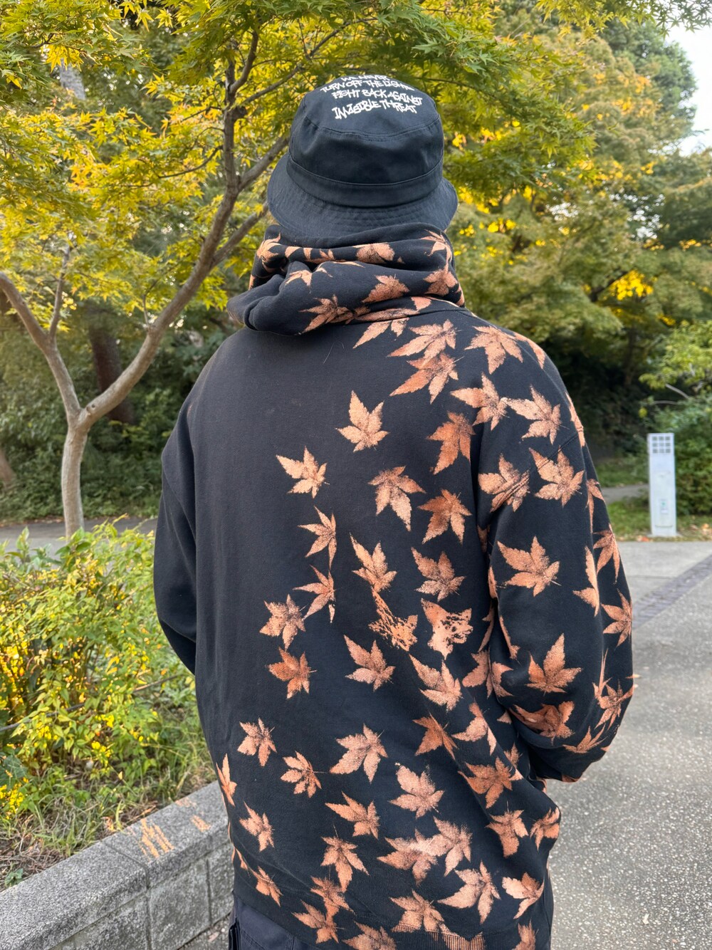 紅葉狩りからヒントを得てパーカーに紅葉で 色抜きしてみました。