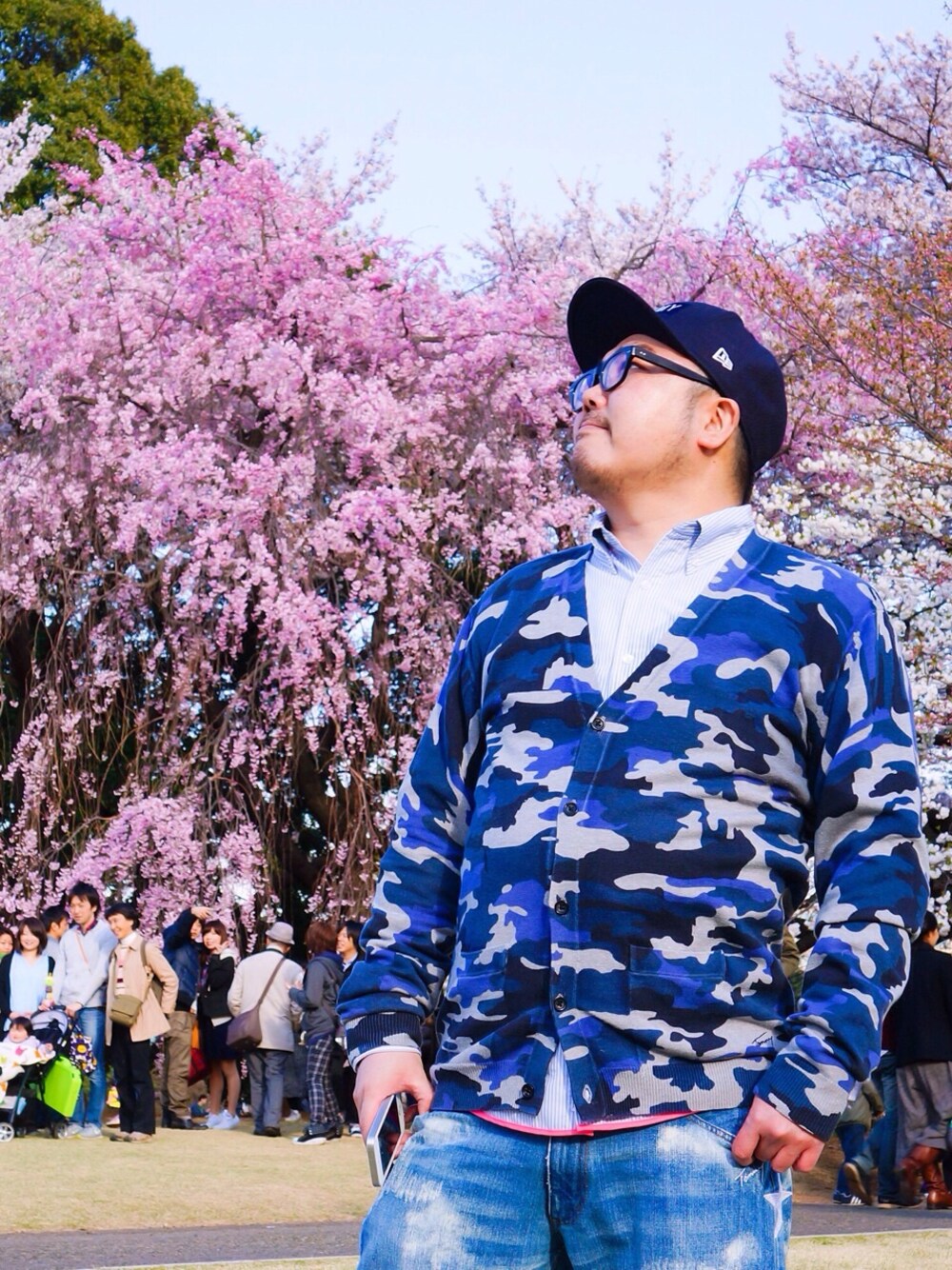 ピンクに対抗してブルー系で攻めてみました。シャツは桜色に拘って選びました。
