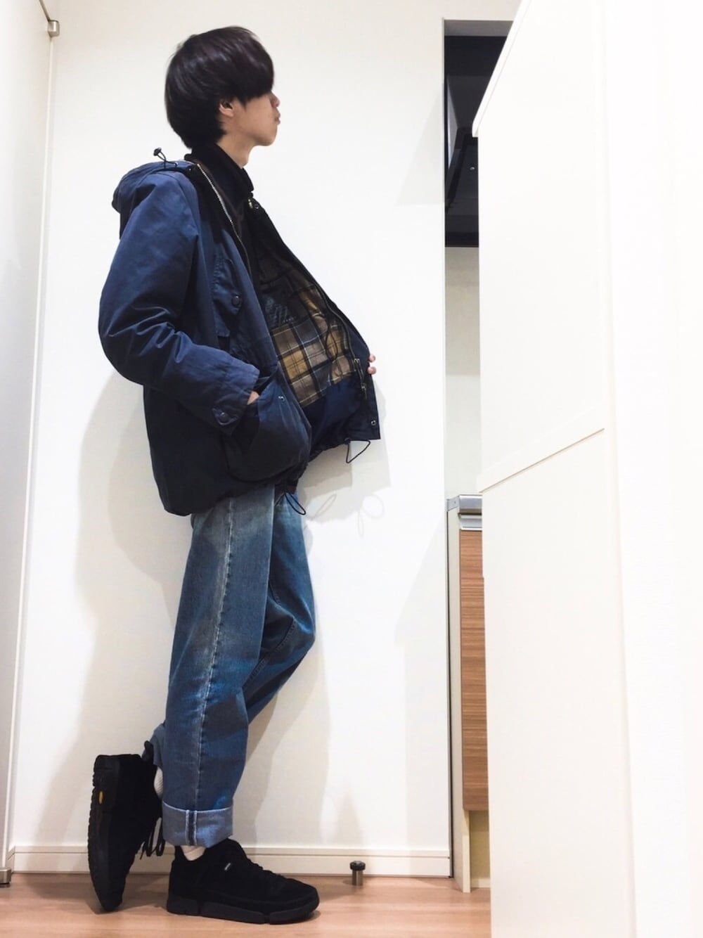 最近古着コーデばっかりですね💦 今年はなんだかショート丈が流行りそうな気がしたのでアウターを少し上の方にして丈感が短くなるような着方をしてみました🙄 こちらのアウターはBarbourのヴィンテージ古着で、よくあるコーデュロイの襟が付いたタイプではないフーディタイプの珍しいものです! 古着ならではの色褪せた感じやシワがすごく好みです…😌 裏地のチェック柄も可愛くてよき! パンツはLevi's 501でこちらもヴィンテージ古着になります。自分は普段デニムをほとんど履かないので合わせる時にいつもめちゃくちゃ悩みます…。コメントでおすすめのデニムコーデ教えてください♪