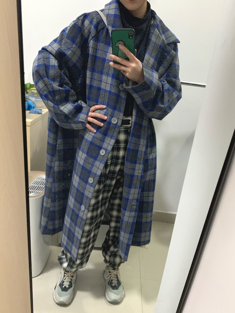 Checksonchecks again 1 fit more(check the check pants on my other looks) Oversized coat makes petite girls cool