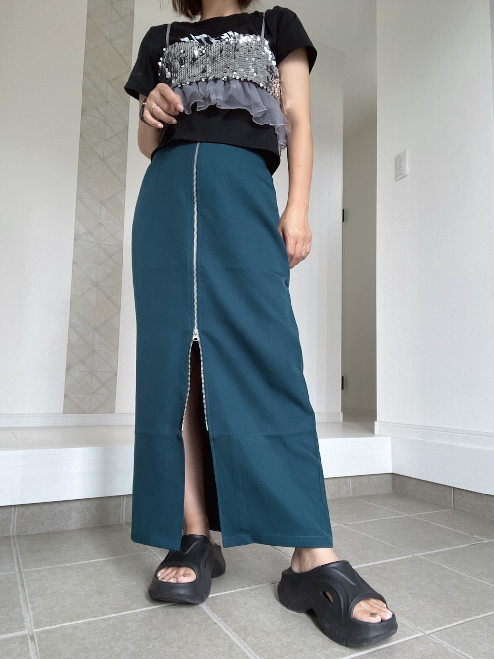 nojikoのサンダル「【LVEU.】デザインプラットフォームサンダル / 靴 シューズ サンダル シャワーサンダル 厚底 ボリューム スポーティー ブラック S M L 23 24 25」を使ったコーディネート