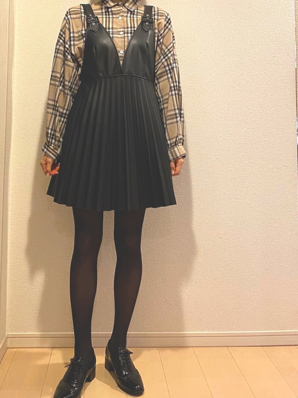 チェックシャツ×レザー¨̮ ¨̮ ¨̮ 最強に好きな組み合わせ☀︎☀︎ チェックシャツはオーバーサイズで ドロップショルダーなデザインに 韓国で一目惚れ⋆☽︎︎·̩͙ このzaraのジャンパースカート お気に入りすぎて大活躍👵🏻 かばんはリュックで、カジュアルダウン𓈒𓂂𓏸 감사해요 ¨̮ ¨̮ ¨̮❁⃘*.゚