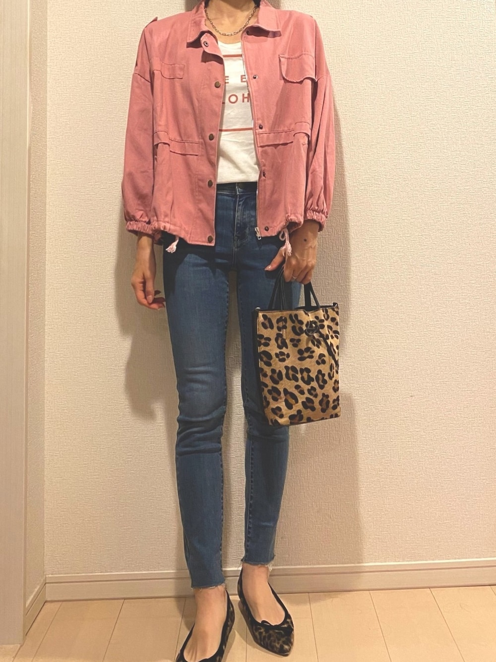 고맙습니다 👵🏻🌥 カジュアルが1番¨̮ ¨̮ ¨̮ この17kgのピンクブルゾン ちょっとオーバーサイズで 襟が付いてるデザインが可愛くて 購入して大正解な子❁⃘*.゚ シンプルだから 小物はレオパードでポイントに♡⁼³₌₃
