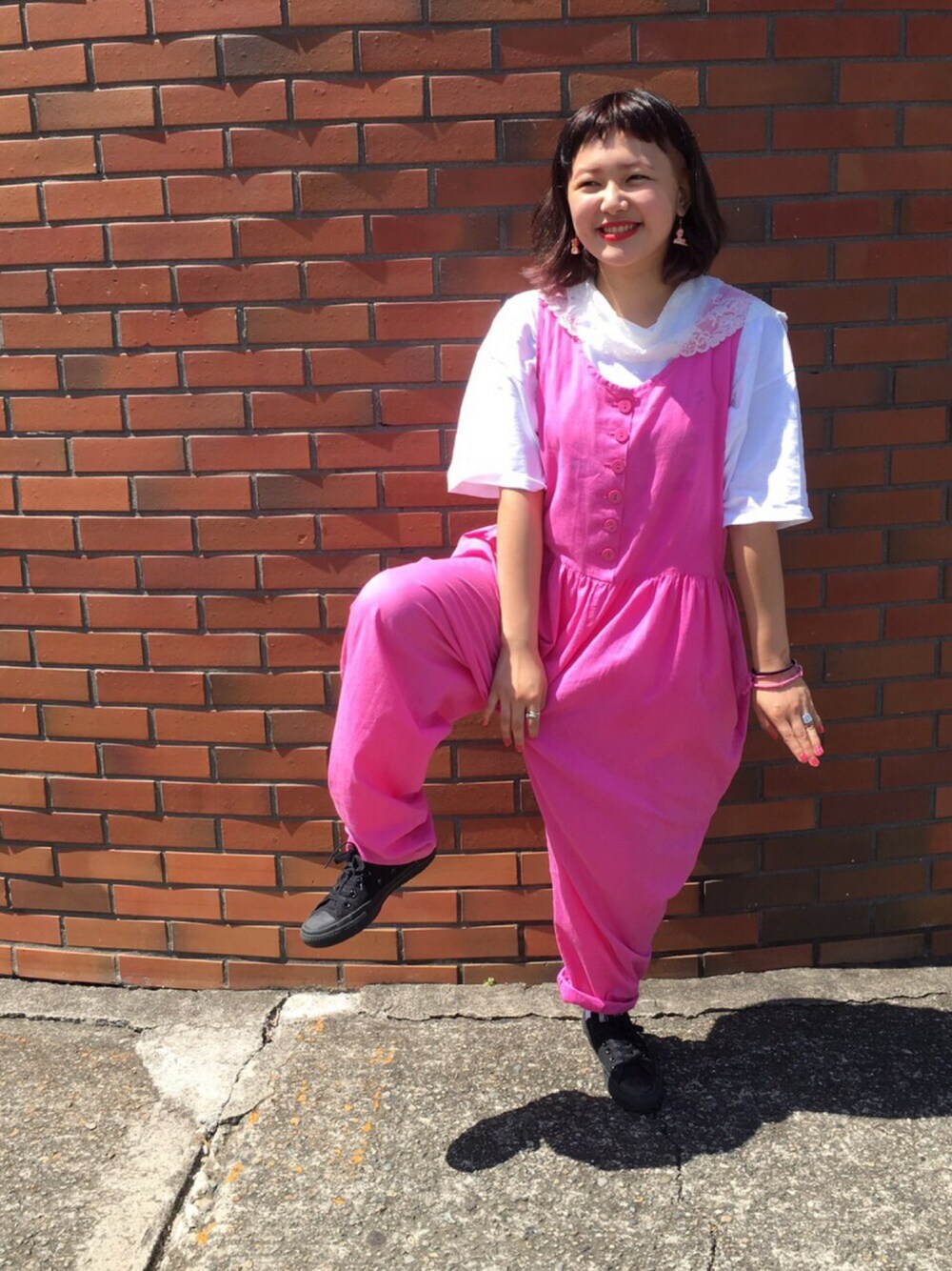 付け襟は自分で作りました。後ろはセーラー服みたいになってます。ピアスは赤ちゃんがぶら下がってるんです! ピンクパンサーと日本のハーフです。
