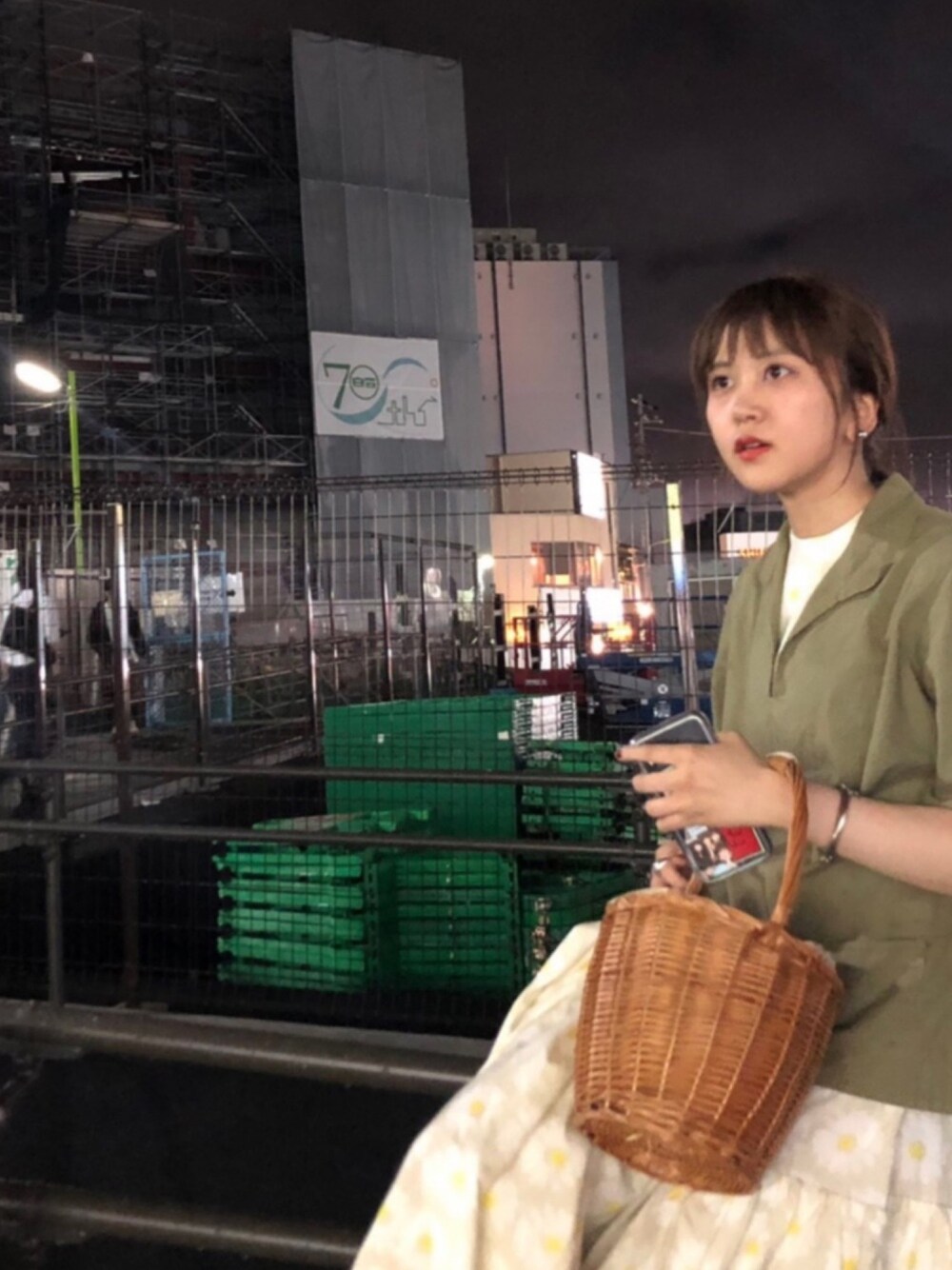 〈fread〉のドレスワンピースに、大阪の〈KEY〉という古着屋さんで購入したヴィンテージのプルオーバーシャツを羽織ってみました。