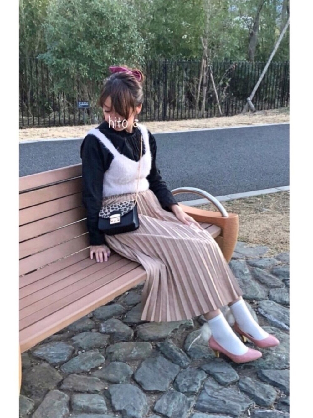 hito のスカート「スエードタッチプリーツスカート」を使ったコーディネート