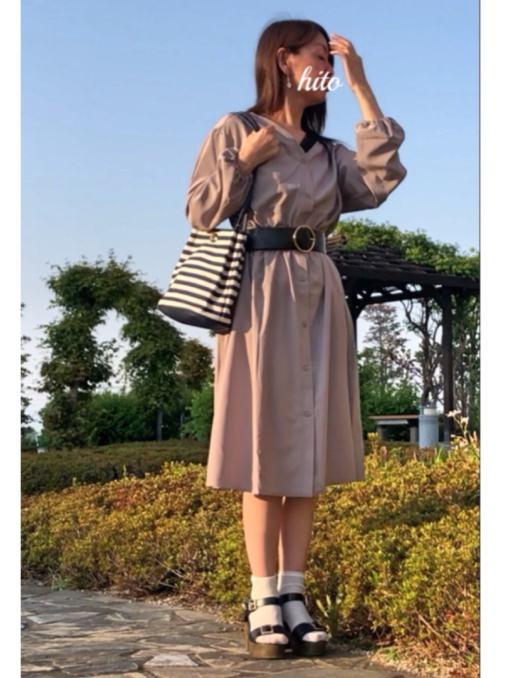hito のワンピース「ベルト付Vネックワンピース」を使ったコーディネート