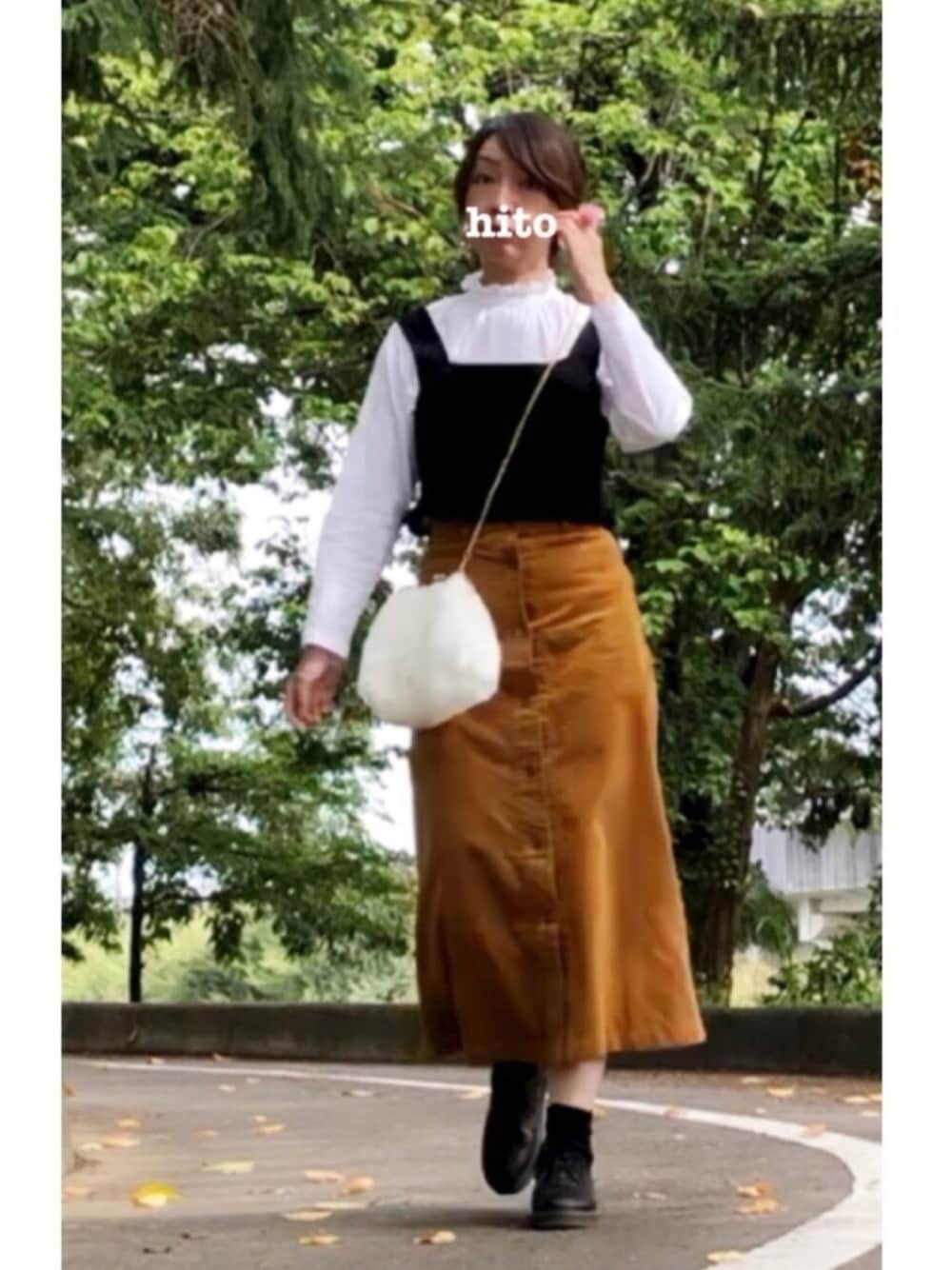 遅くなりましたが 商品ページの掲載ありがとうございます😊 SVEC様 GYDA様 ZOZO様 ありがとうございます✨ 今日はフロントボタンのコーデュロイスカート😝マスタード色 あんまり似合わない気がする✨ ビスチェ合わせにモコモコバッグ お気に入りです❤️ あっ🤭ピースするのすぐ忘れてしまう💦