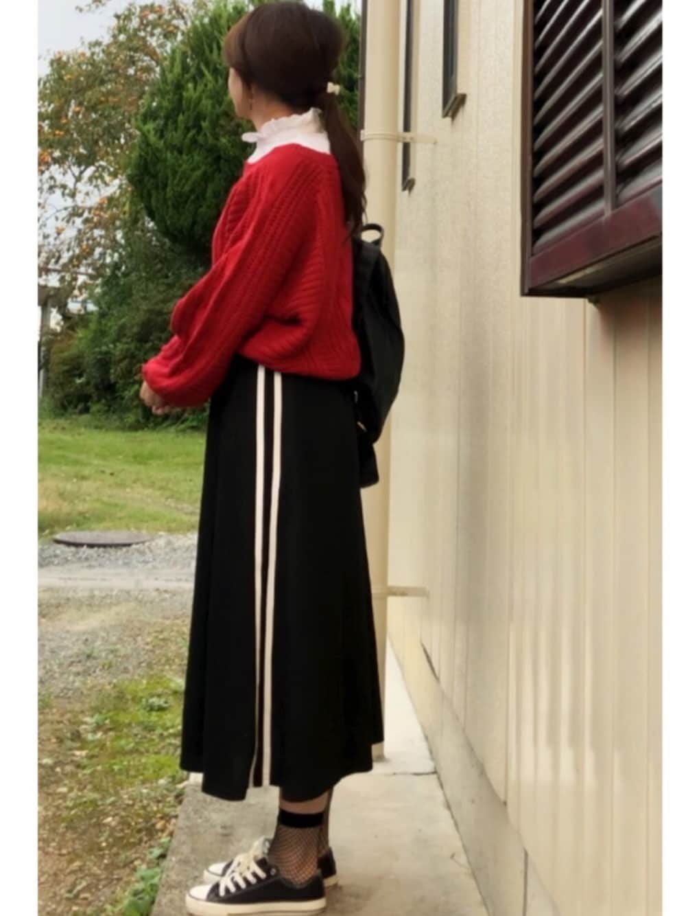 少しだけお久しぶりです✨ 急に夏日になったり寒くなったり 気温差についていけませんね😆 新しい服たくさん来てるけど コーデが間に合わなくて、 今日は着まわしで ラインスカートに赤ミニ丈ニットにつけ襟で あみタイツ靴下に🧦スニーカー👟合わせてみました😊 これからスシローに行ってきます☺️