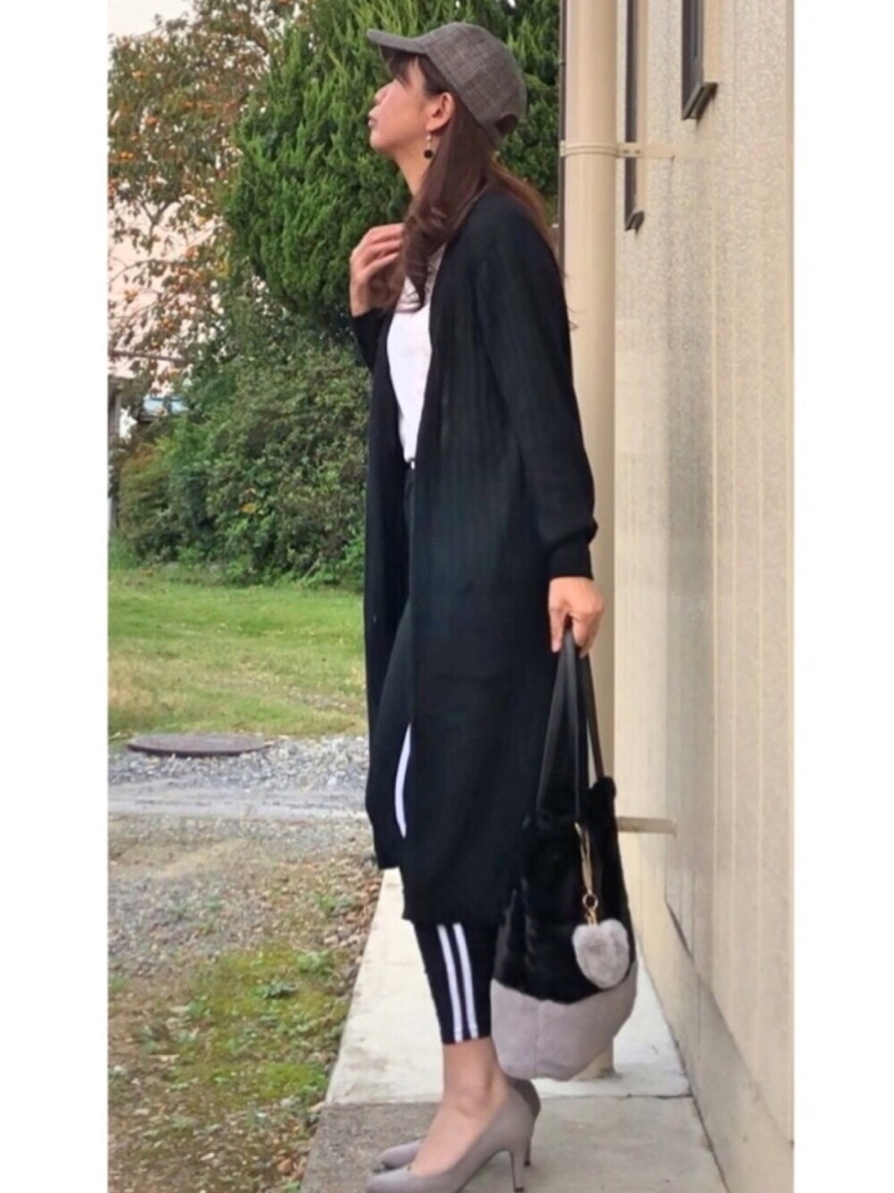 なんだか日が暮れるの 物凄い早くなりましたね😳 すぐに嫌いな冬が来るのでしょう😅🤥 きようはラインパンツでスポーツミックス スポーツミックスってなんか コーデ考えるの好き❤️ という事で着まわし❓一応ロングカーデがオニューかな☺️ 少しの間お付き合いください🙇♀️ 小物にグレーで統一 それとキャップにグレンチェックチョイス このキャップGUの使える👍