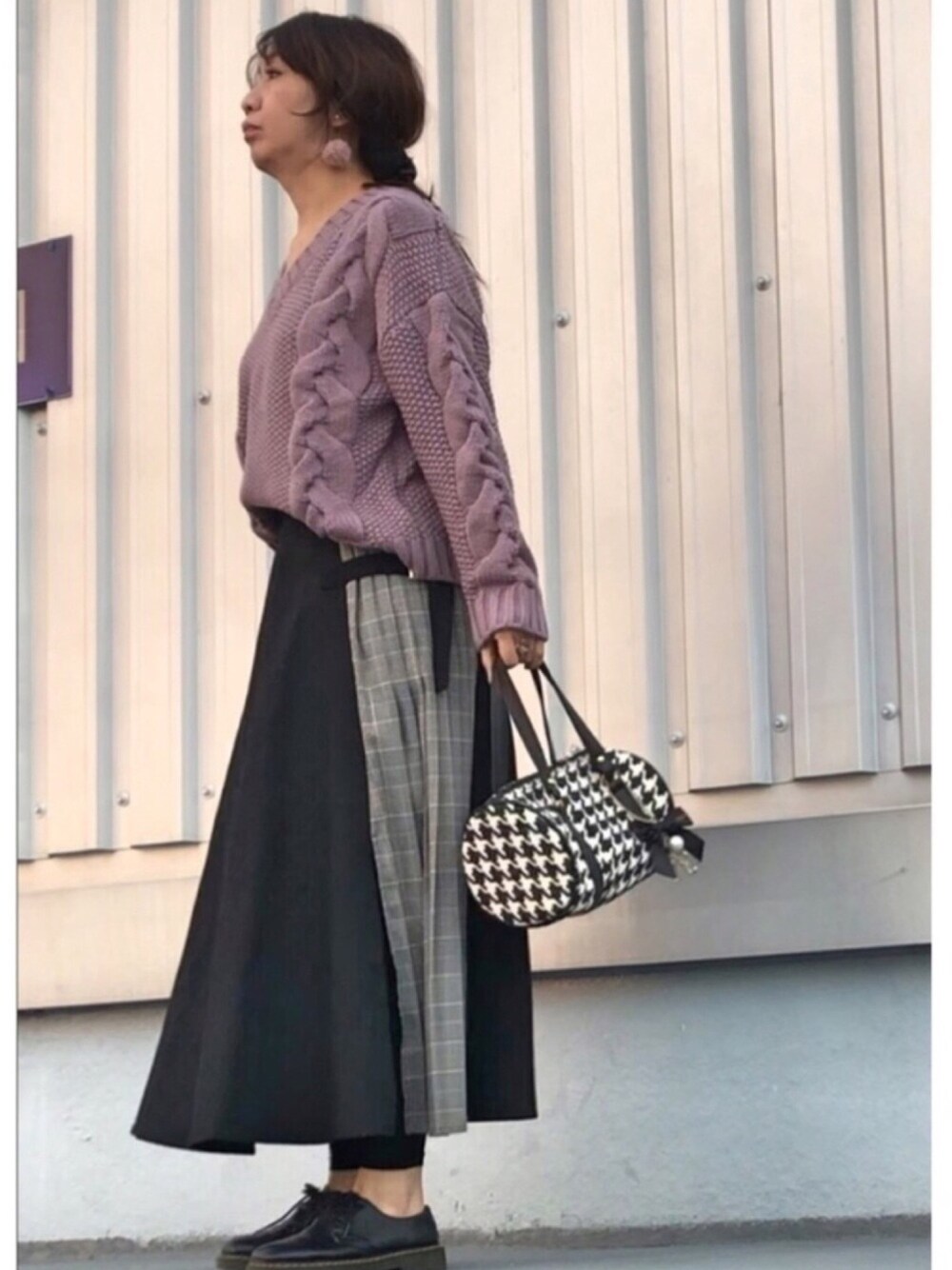 hito のニット/セーター「ビッグケーブルVネックニット」を使ったコーディネート