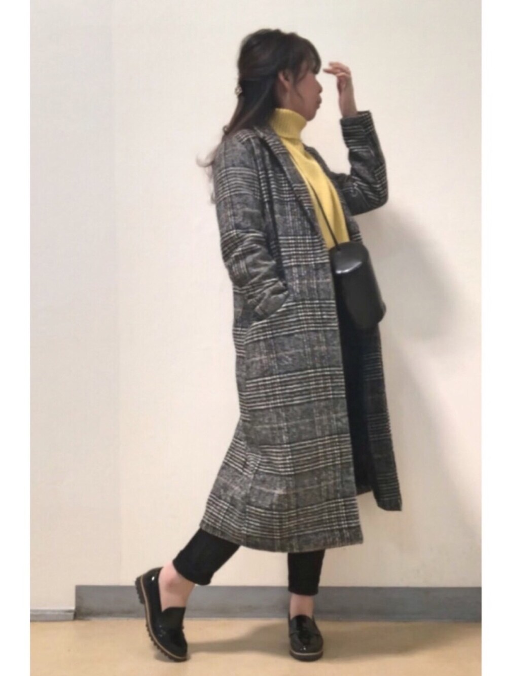 hito のチェスターコート「グレンチェックロング丈チェスターコート」を使ったコーディネート