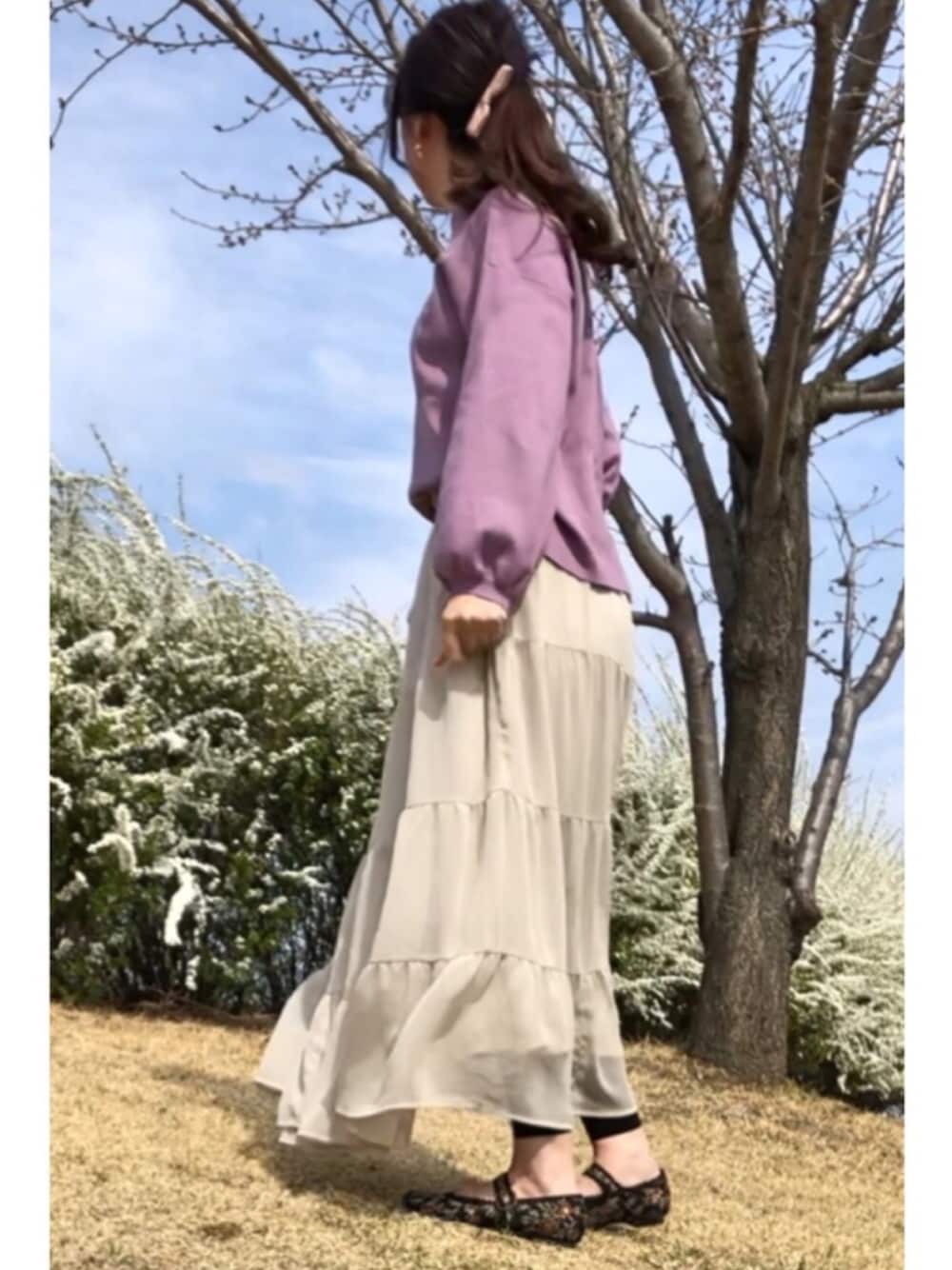 お花見の時期ですね🌸 今年はほんと暖かい✨ ピンクはヘアアクセ🎀 ティアードスカート❤️ にゴブランストラップのお靴👞 バッグも持ってるけど隠れてる👜 ピンクフェスの告知小窓にて✨ たくさんの参加お待ちしてます💗