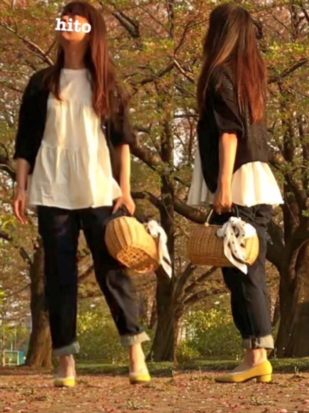 美容院行ってきました💇♀️✨ トリートメントして 前髪ぱっつん❤️ 今日はGUのティアードティ ティ ティ TT T〜😆 珍しくデニム ワンウォッシュが細見えするから好き❤️ 🌸が少しだけ舞ってました ほぼ緑の葉に変わってました🌱