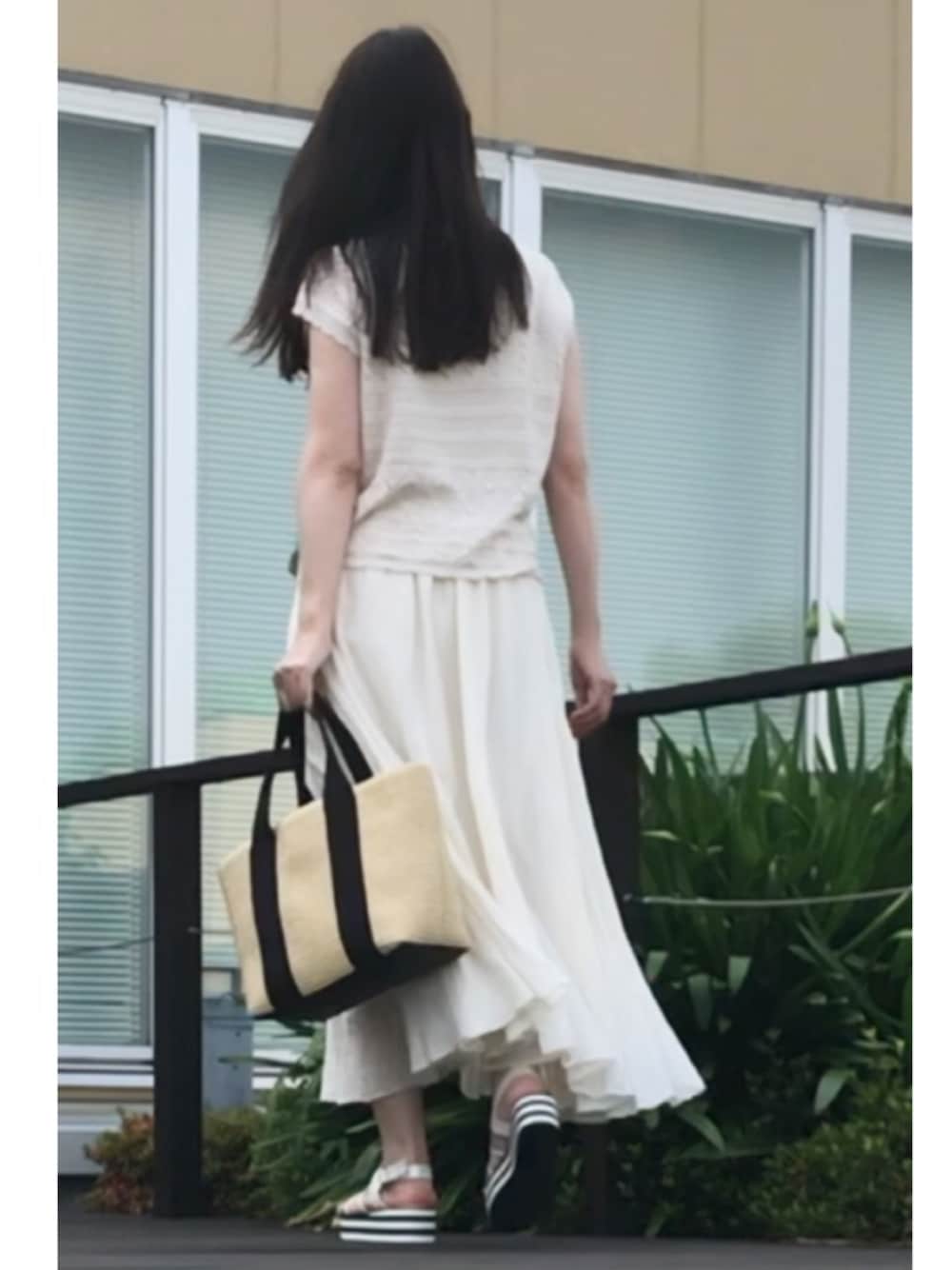 今日はオフホワイトコーデ💛 ホワイトよりオフホワイトが好き✨ 編み編みのニットトップスに 大好きなスカート このスカートは毎年夏に一番履くお気に入りのスカート💕コットン素材✨ 形が凄くオシャレなの サイドに生地が寄っていてシルエットが好きすぎる❤️ しまむらのクリアサンダルがポイントになる👍 髪ね✨ 夏だからコテ巻くの暑くて面倒だから パーマかけようとしたら担当の人に却下され 艶サラを維持するために諦めました🤦♀️ お年頃だから傷んで艶が無くなってしまうしまうみたいで 若い人たちは好きな髪型出来ますからね👍✨ 私たち世代は髪も歳をとりますから、でも髪は凄く大事だとひしひしと感じております✨💦 ということで艶サラをとりました😆💧