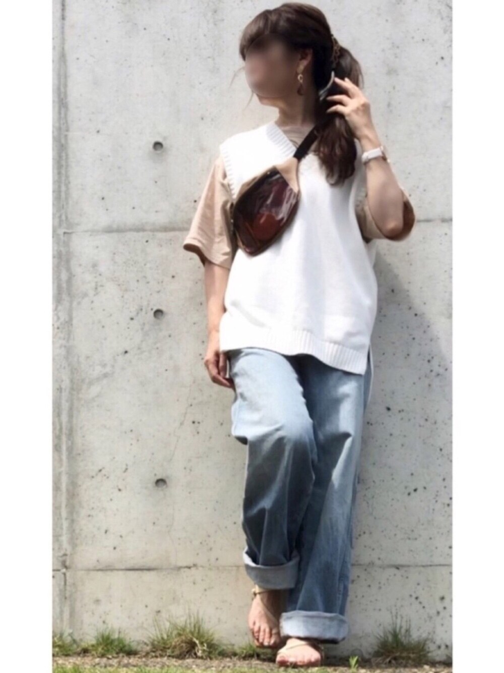 GUのニットベストホワイトLサイズ 買いました❤️ かわゆい チルデンニットベストありましたよ〜 白とホワイトのレイヤード好きなので トップス白にするか悩みましたが ベージュに アクセントに時計の白🕰入れてみました❣️ もうすぐですね梅雨明けも 大好きな夏が待ち遠しい😍