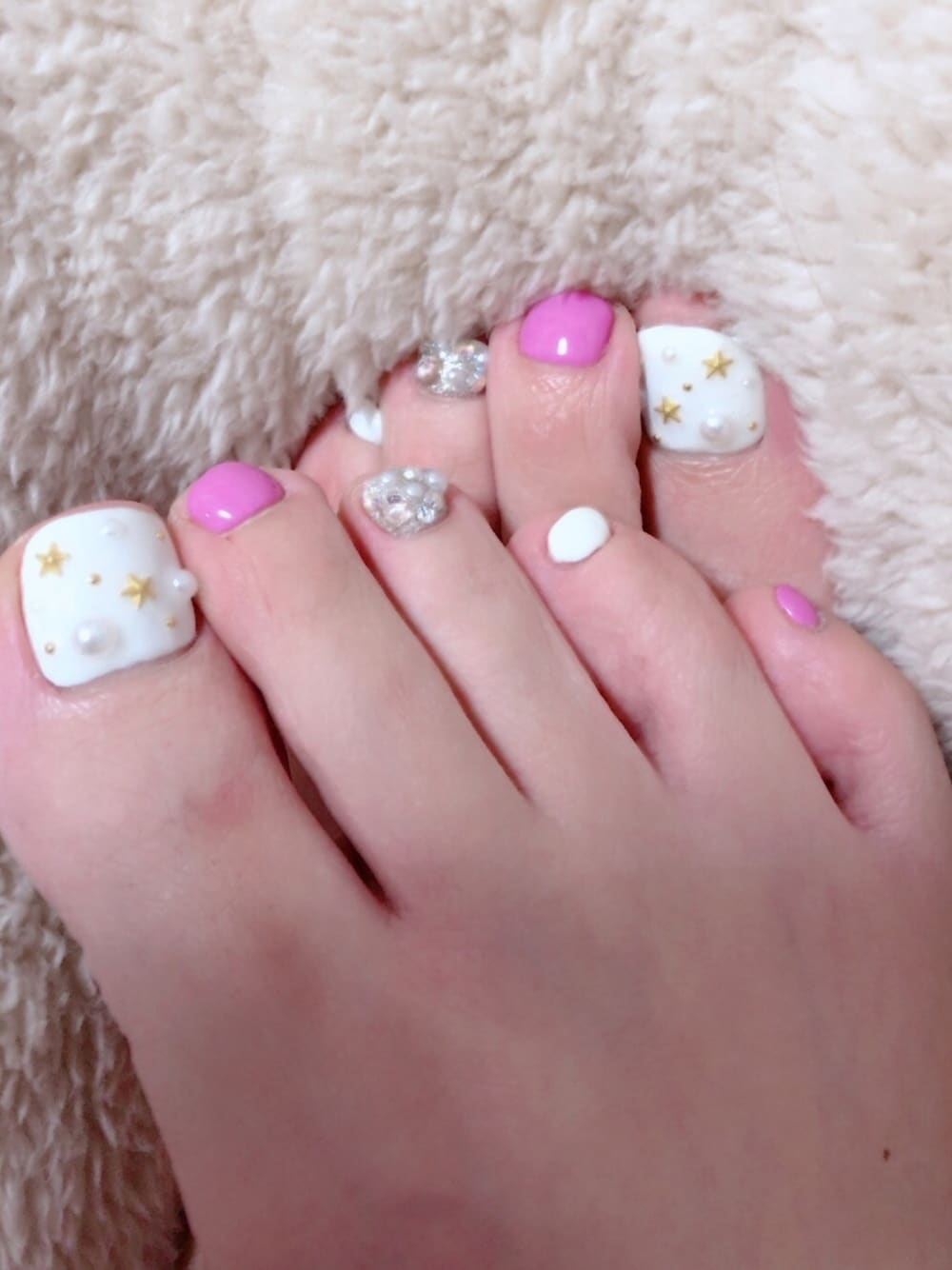 今日は2ヶ月に一回 フットジェルネイル🎄 ホワイトクリスマスに❄️ イルミネーションぽく✨ そして差し色にピンクと紫の間のカラー❣️ 親指は星に⭐️パール入れてます❤️ もうすぐだね クリスマスも🎄🎅🤶 ホワイトクリスマスにならないかなぁ❄️ こんな中年だけどさぁ 凄く凄く少女でロマンチストなんだぁぁ💕 わかってくれるかなぁ😆 イベントは楽しみたいタイプでも 仕事だ🤣 年末のライブまでお預け😆 ネイル興味ない人はスルーしてくださいね✨