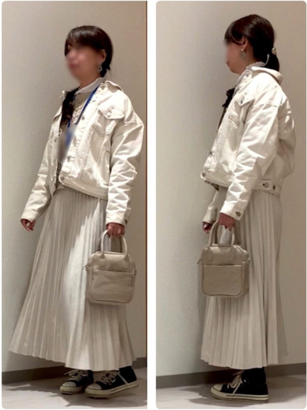 エクリュのデニムジャケット🧥 スニーカー急いでて黒にしたけど ベージュが良かったよね〜💦
