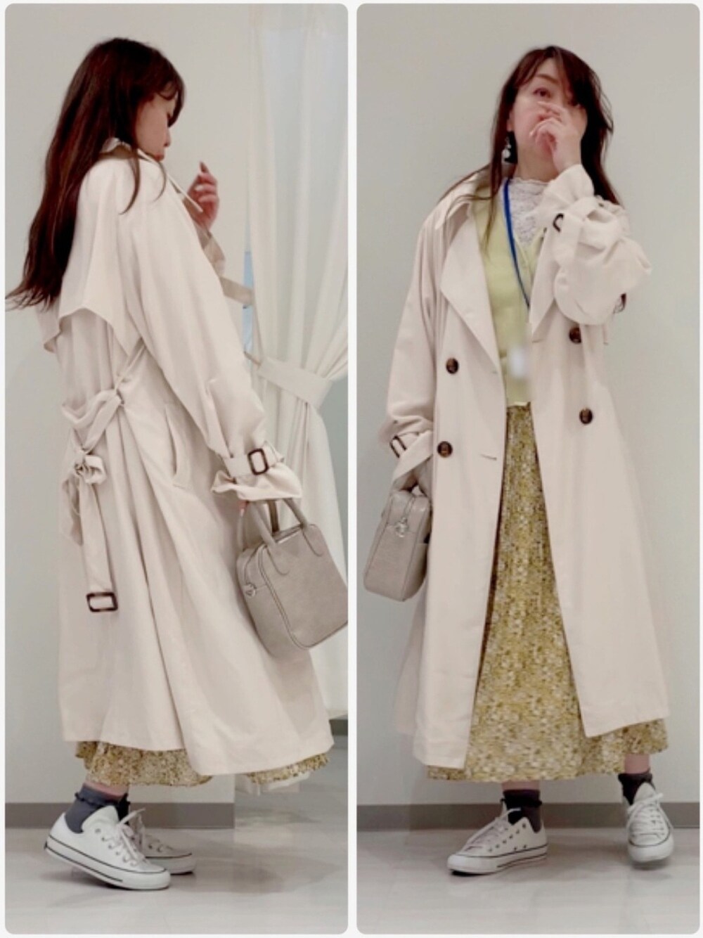 いつの日かの仕事コーデ 着回しです💦 髪もまとまってなくて😭😞😓 菜の花コーデ💛 菜の花仕事行く途中 華麗な場所があるのに 毎日余裕がなくて寄れない私😓 それで頭の中が菜の花畑になり 気づいたら菜の花コーデに🌼 菜の花も桜の花も散る前に見に行けるといいなぁ🌸🌼