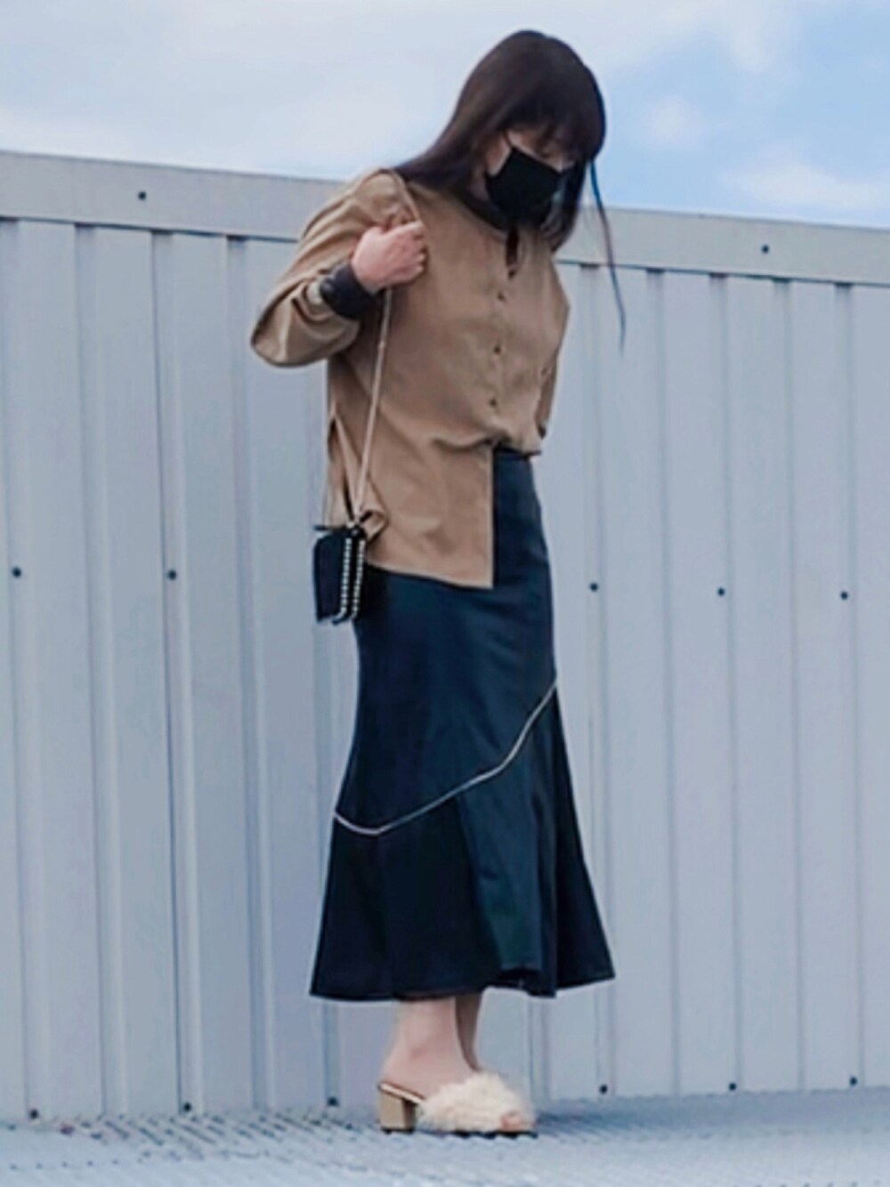hito のスカート「フェイクレザーパイピングマーメイドスカート」を使ったコーディネート