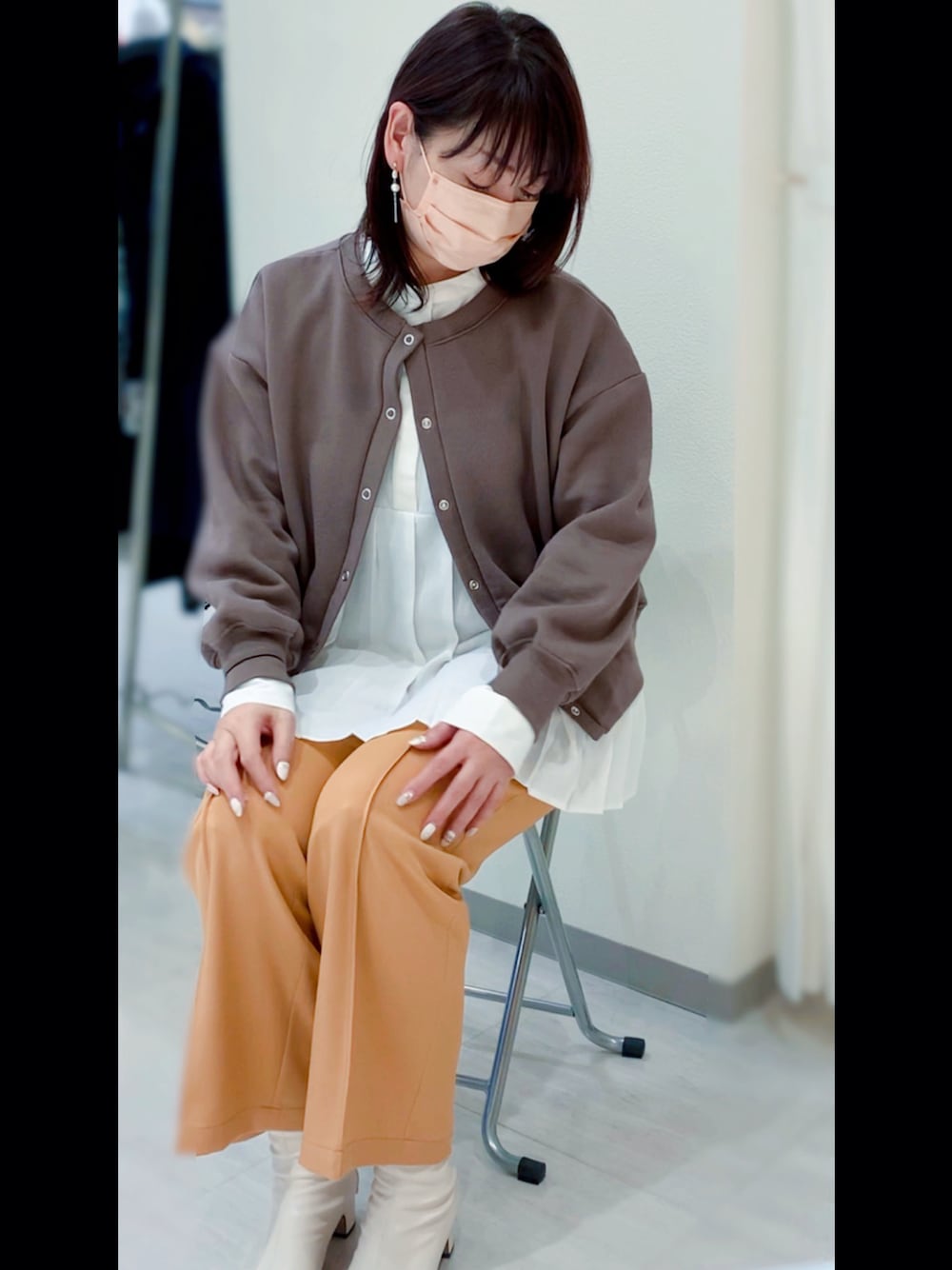 またまたパンツの丈Lにしてもが短い🤣 パンツが似合わない😭 いい色味なのに🧡 スカート履こう😆