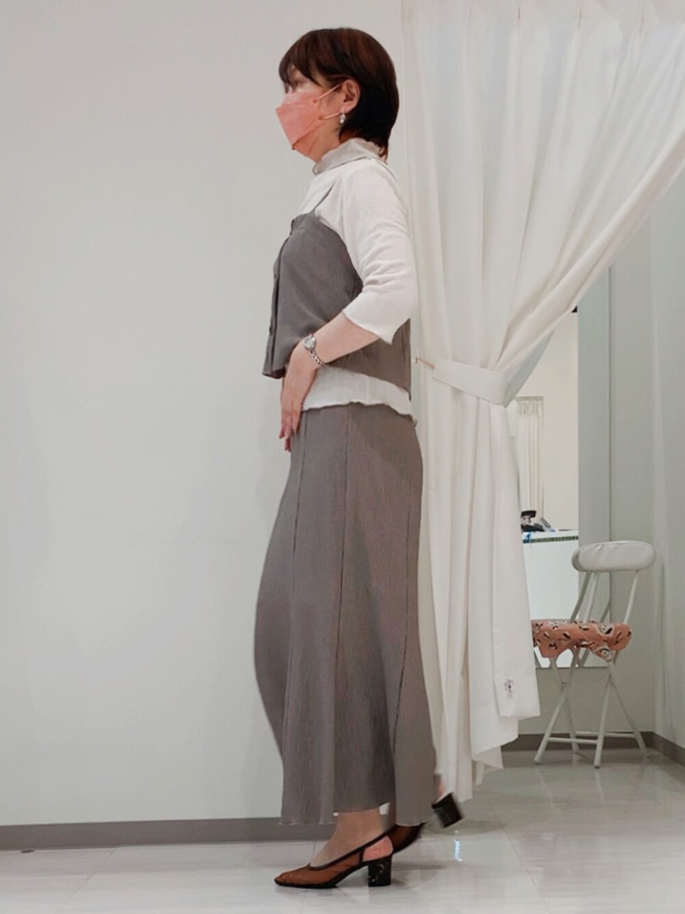 しまむらのセットアップ💕 ワッシャー加工 で大人かわいい色味 ワントーンコーデにしてみました🤎 サンダルもあみあみで可愛いの😍 お尻と背中側がシミみたく写ってる😭 なんでだ💢