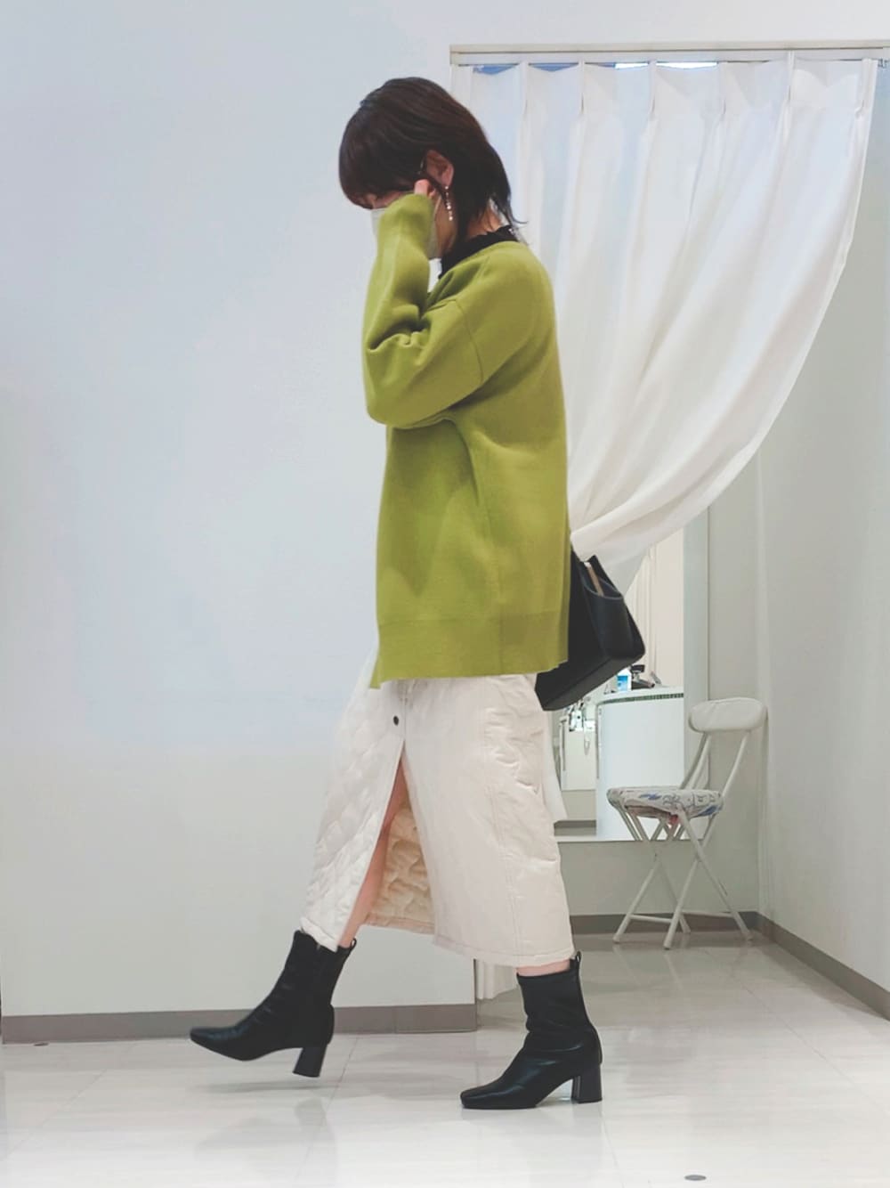 スリット入りのキルトスカート 縫い方がうねうねってなってて可愛い子です😍 お気に入り❤️タイトな所も大人可愛い💕 コーデ頑張って載せていきますね🧐 あっ🤭誰もまっていない😂