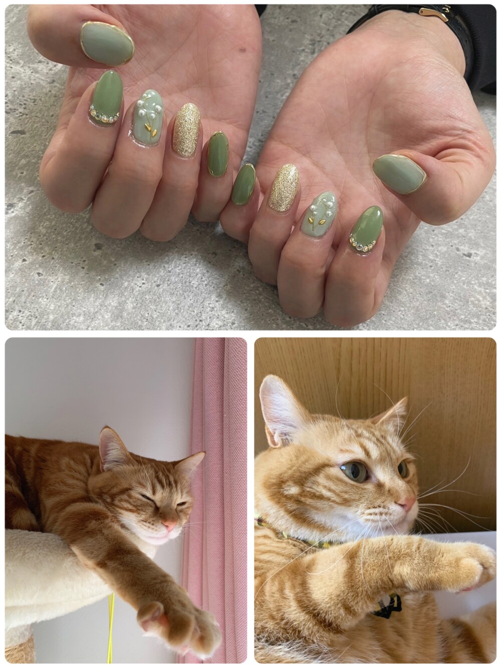 たまには毎月のジェルネイル💅💚 今回はすずらん入れてもらい 今年のラッキーカラーのグリーン💚です✨ すずらんの花言葉 純粋 幸せの再来 すずらんやかすみ草は大好きな花 メインの花ではないけど 一つ一つとても可憐で可愛い💕 そんな花になりたいわたし😂 乙女なんですよ、実は😂 それと愛猫のラテ🐈😻 そろそろ4歳になります🎂