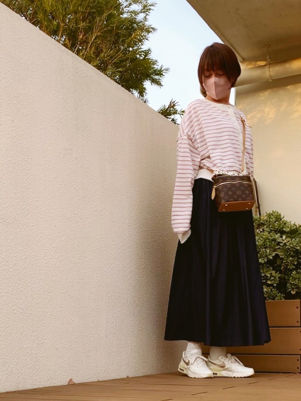 ノーメイクです🤭 失礼します✨ マツエクもやめたから目が😂 このグレイルのカーディガン ミニ丈で可愛い💕 あまりボーダー買わないのですが 白が多めでピンクの色味も可愛くて2wayなので使えるかなって思って購入💕