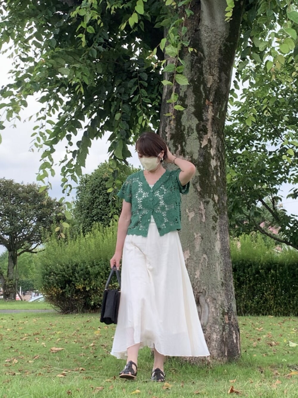 緑多すぎて🟢 レースカーディガン目立たないですが 似合わないので売ります😆 わたしみたいに二の腕ぽっちゃりさんには🐷似合わない🤣 素敵な方に着ていただきたい✨ 着用したのは2度目くらいだと 思います😉 スカートはお気に入り過ぎて 何度も履いてます❤️
