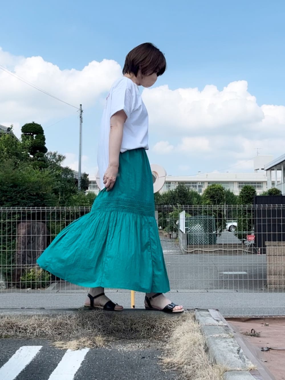 この青緑好き❤️ ビッグシルエットテイシャツ ポケットと背中部分に赤のロゴ🟥 ポイント👍✨ 好きなシルエットに スカートも間レースとか私好み💙💚 あっ😅3枚目も4枚目の一緒かも🤭💦 朝イチで美容室 その足でユニクロ 旦那と私のエアーリズム買って 帰ってきました☀️🥵 日差しがやばそう☀️🥵🥵