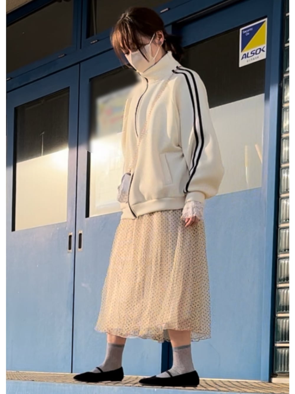 久々になってしまいましたが 元気です🖐️ 誰も聞いてない🤭😛 まいちゃんが可愛く着こなしてたから わたしもしまむらに行ってトラックジャージゲット👍 やはり可愛い〜💛 ワントーンコーデに差し色でシースルーの 靴下🟦入れました🧦 スニーカーにしょうかと思いましたが おくつおニューだったので載せました✨ この靴もZOZOTOWNで😍 付け袖がポイントです😍