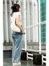サンダルもチュールにバックル付き♡ 小物を全部白にしました デニムのビスチェの着こなしは難しいので シンプルにしました🥰 このビスチェはスカートにもなる優れもの👍