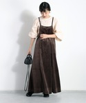 茶系のベロアのキャミワンピースと ガーリーなブラウスに綺麗めな テーラードジャケットを合わせた大人コーデです☺️