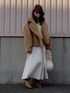 シルエットもオーバーサイズ感もほんと🧸っぽい🤎 可愛いです❤️ 黄色のラメニットと合わせてみました🟡 黄色🟡🤎の合わせ 自分的に好きです🥰 スカートもヘビロテ中 日陰で暗くなってしまいました🙏