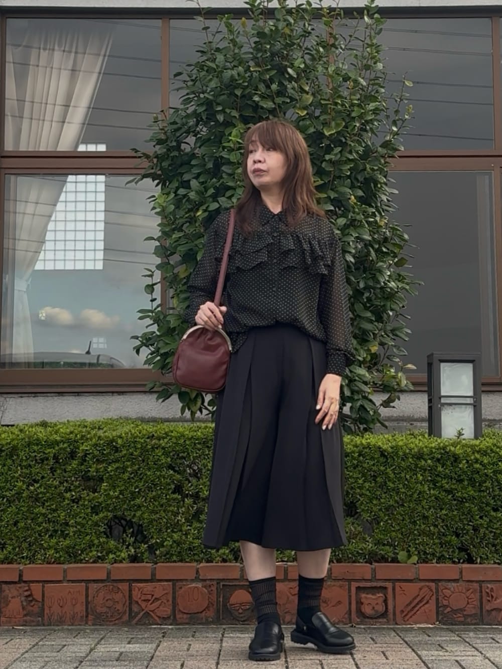 この古着屋で見つけたがま口👛バッグもお気に入りです🫶 このGUのパンツはかなりシルエット綺麗です🤩 少し遅めの投函ですが お付き合いください🖤