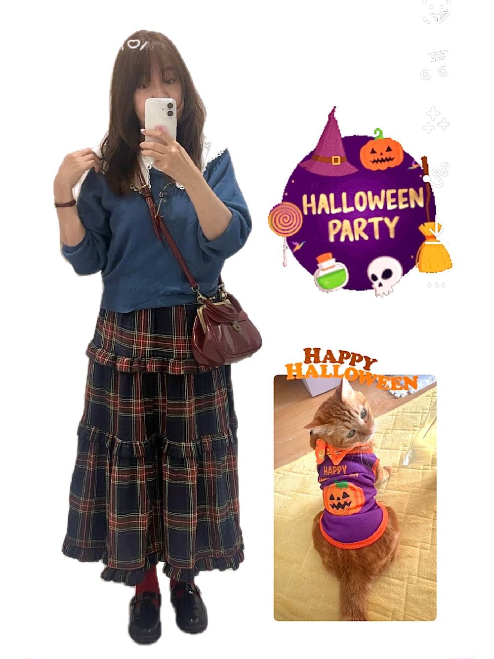 ハッピーハロウィン🎃🧟♀️🧟👻 ラテも6歳になりました😻 皆様も楽しいハロウィンの夜を🎃 赤のニット着る予定でしたが間に合わず😅 先程のコーデ削除してやり直しました🙏 いいねお気に入り押してくださった方 ごめんなさい🙇♀️ 重複になるますが、 後ニットが所々白く写ってるけどなんでだろう😭