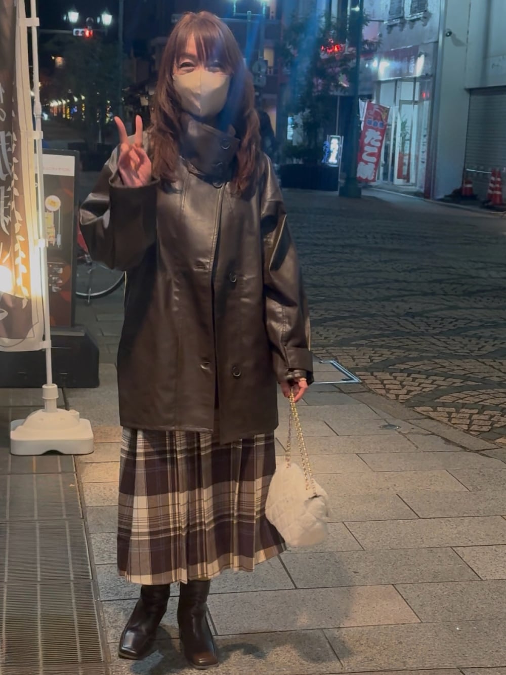 このシルエットめっちゃかわいかった🤎 普段ライダースが多いのですが この大きめシルエットなんでも合いそう👍 レザーのアウター欲しくて ちょうど良いのがアウトレットで安くゲット出来ました🙌