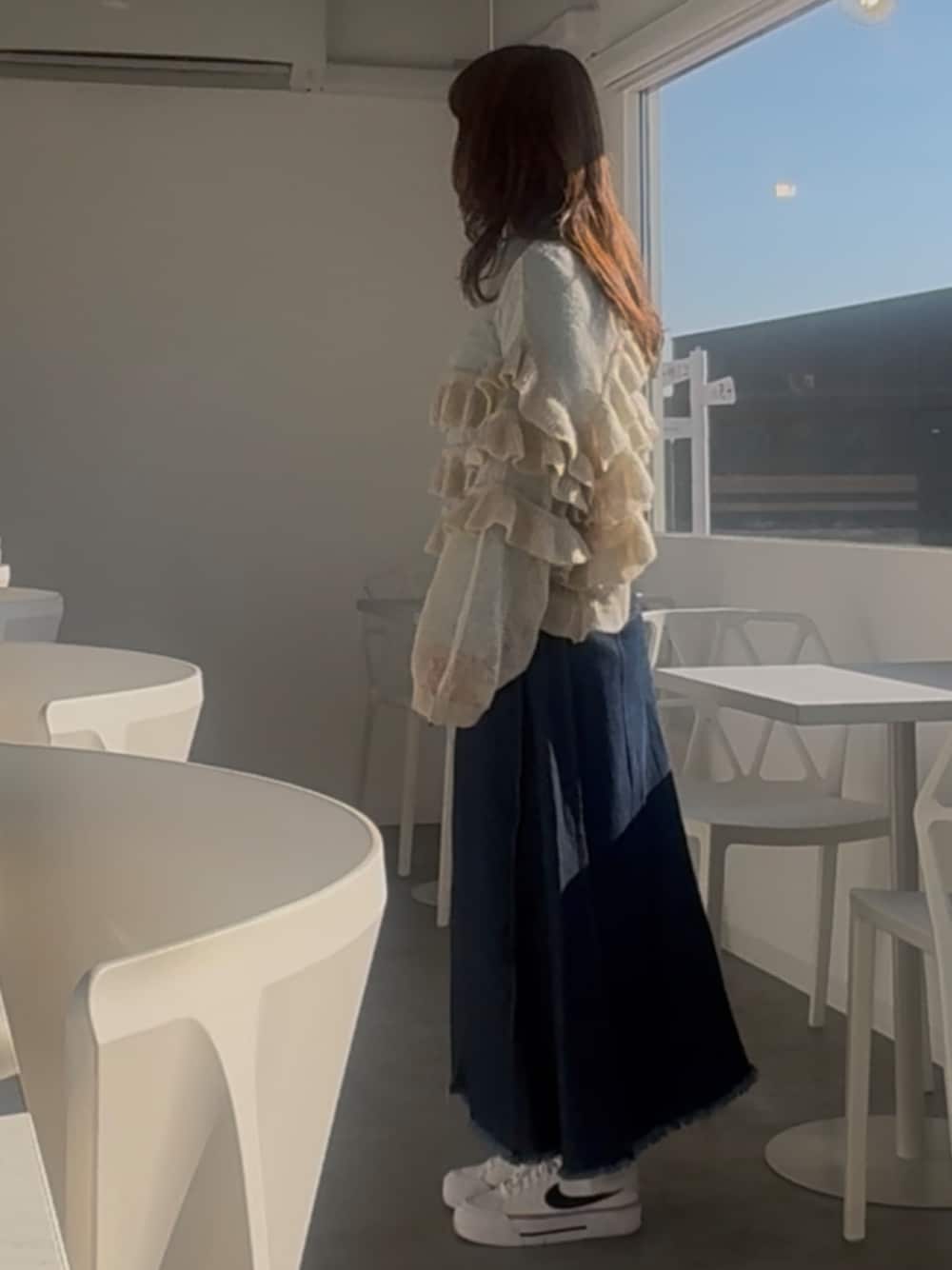 寒いけど透け感のあるニット まだまだ買ってあります💛 このニットは前も後ろも横もフリフリ付いてて可愛すぎました😍